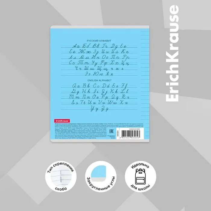Тетрадь школьная ученическая формата А5+ (170 х 203 мм). Обложка из высококачественного мелованного картона плотностью 180 г/м2. В блоке 18 листов в линейку с полями. Бумага офсетная плотностью 60 г/м2. Цвет линовки - синий. Скругленные уголки обложки и блока. Тип скрепления - скоба. Тетради упакованы в термоусадочную пленку по 10 штук.