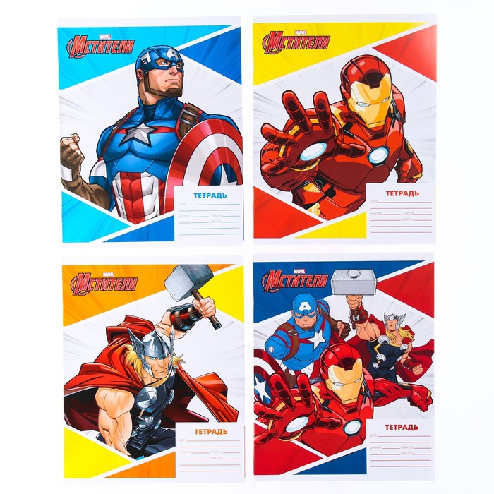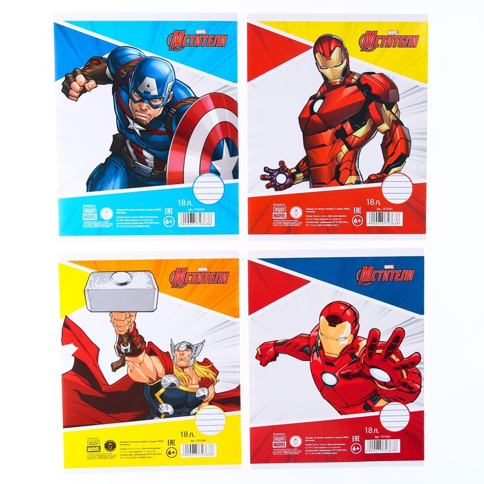 Тетрадь 18 листов, в линейку, МИКС 4 видов, обложка мелованная бумага, «Мстители» — Характеристики