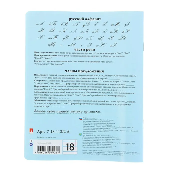 Тетрадь 18 листов в линейку «Народная», обложка мелованная бумага, голубой — Характеристики