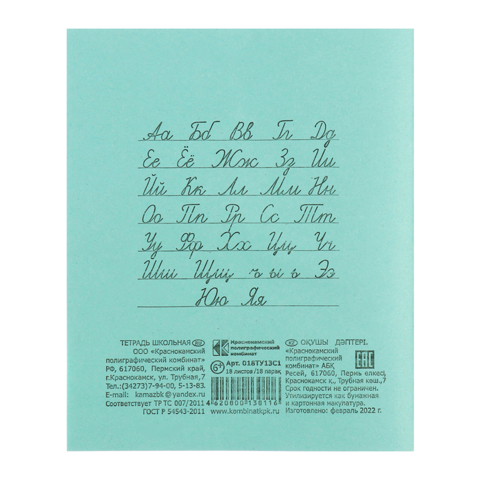 Тетрадь 18 листов в линейку «Зелёная обложка», серые листы, 58-63 г/м² — Характеристики