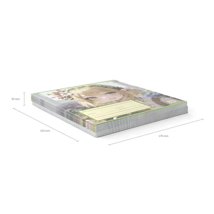 Тетрадь школьная ученическая формата А5+ (170х203 мм). Обложка из высококачественного мелованного картона плотностью 170 г/м2. В блоке 24 листа в линейку с полями. Бумага офсетная плотностью 60 г/м2. Цвет линовки - синий. Скругленные уголки обложки и блока. Тип скрепления - скоба. Тетради разного дизайна упакованы в термоусадочную пленку по 10 штук.