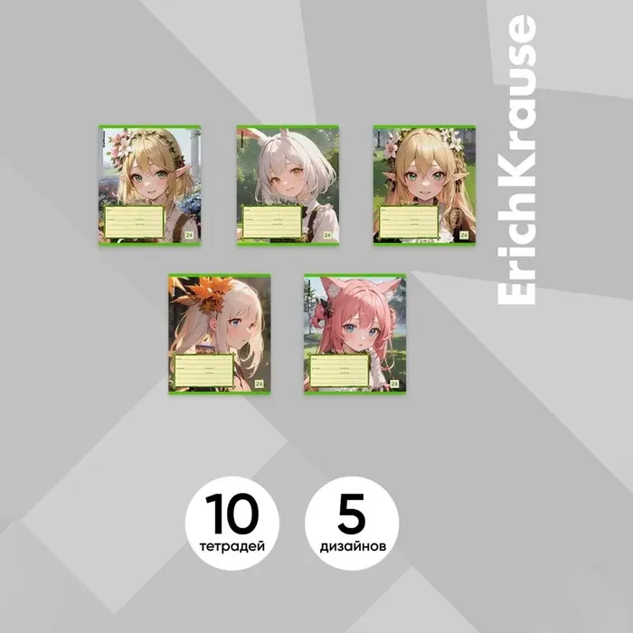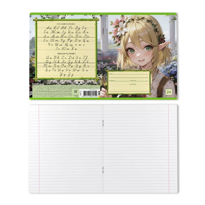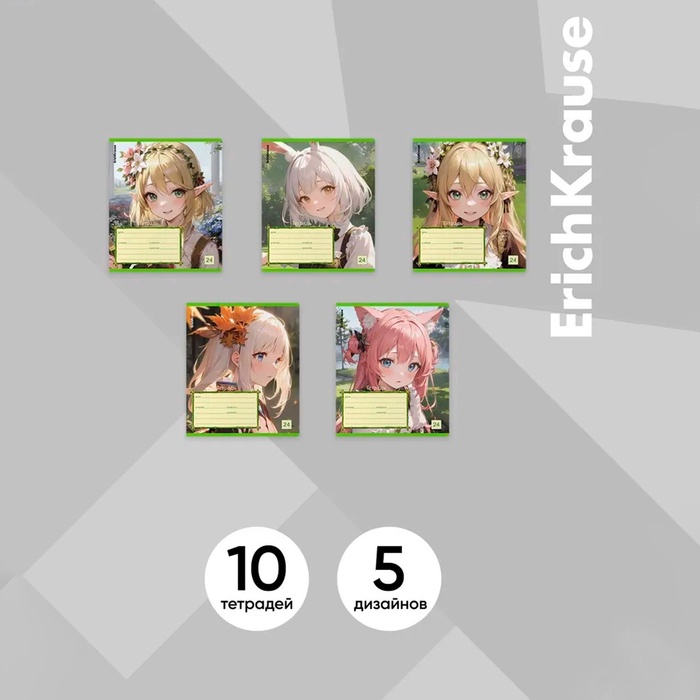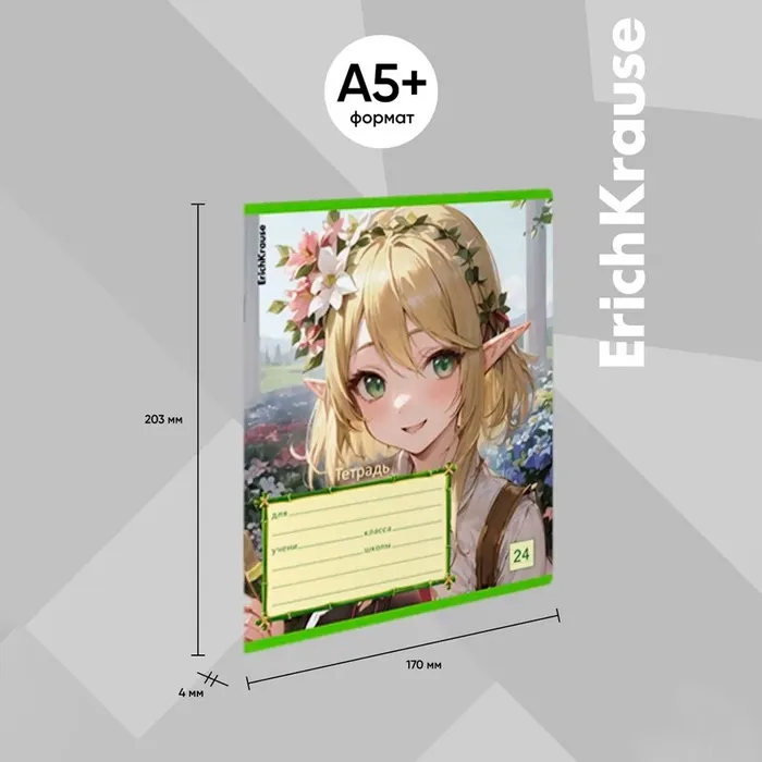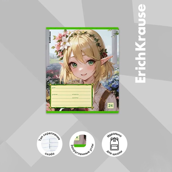 Тетрадь 24 листа в линейку, ErichKrause «Эльфы аниме», обложка мелованный картон, МИКС — Характеристики