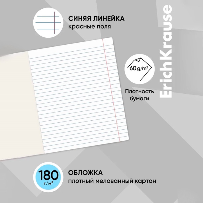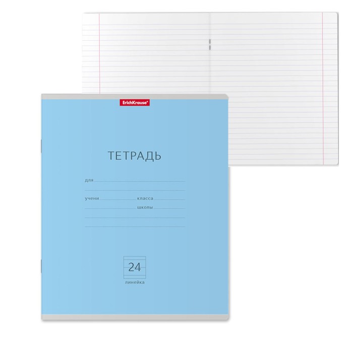 Тетрадь 24 листа в линейку, ErichKrause «Классика», обложка мелованный картон, голубая — Характеристики