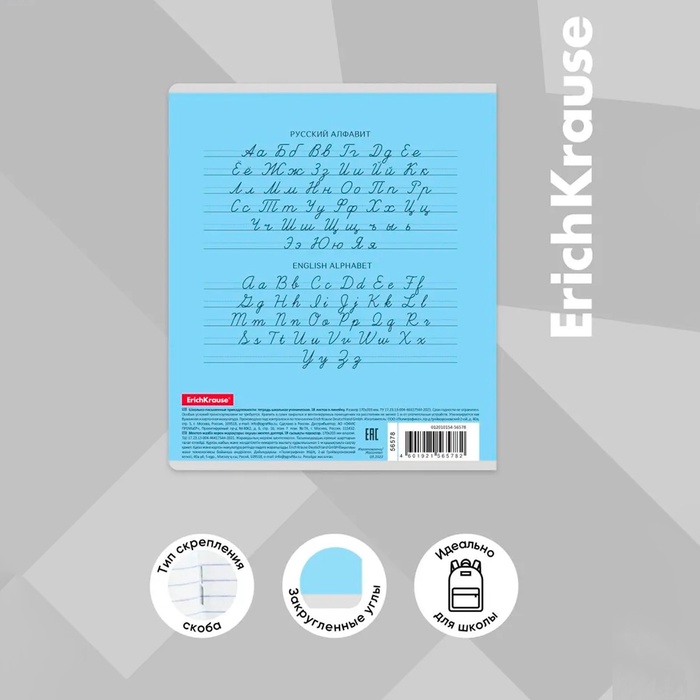 Тетрадь школьная ученическая формата А5+ (170 х 203 мм). Обложка из высококачественного мелованного картона плотностью 180 г/м2. В блоке 24 листа в линейку с полями. Бумага офсетная плотностью 60 г/м2. Цвет линовки - синий. Скругленные уголки обложки и блока. Тип скрепления - скоба. Тетради упакованы в термоусадочную пленку по 10 штук.