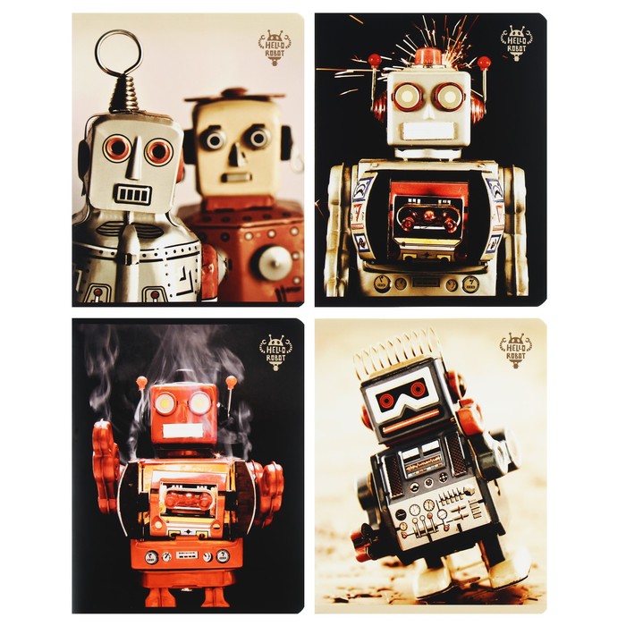 Тетрадь 48 листов в клетку на скрепке «Роботы», обложка мелованный картон, матовая ламинация, МИКС