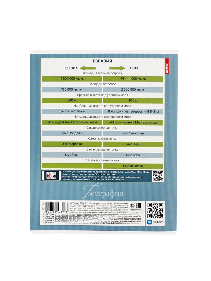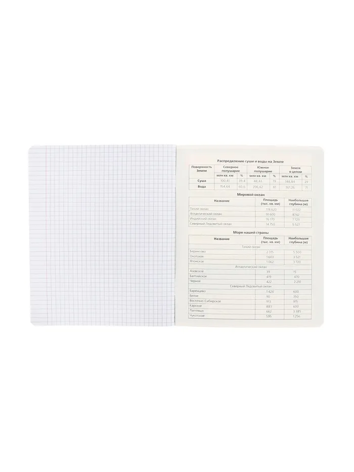 - Высокое качество бумаги: Белизна блока 95-100% гарантирует комфортное восприятие текста и рисунков. Листы в клетку подойдут как для написания конспектов, так и для черчения графиков и схем, что удобно для изучения географии.