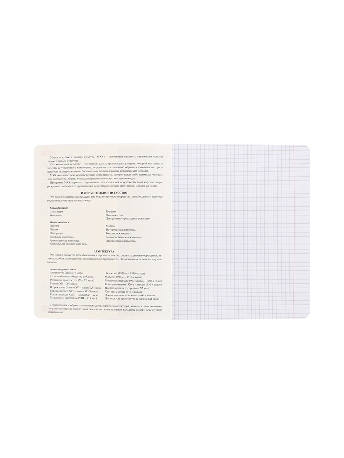 Тетрадь 48 листов в клетку «Буквица» Мировая художетсвенная культура, белые листы — Характеристики