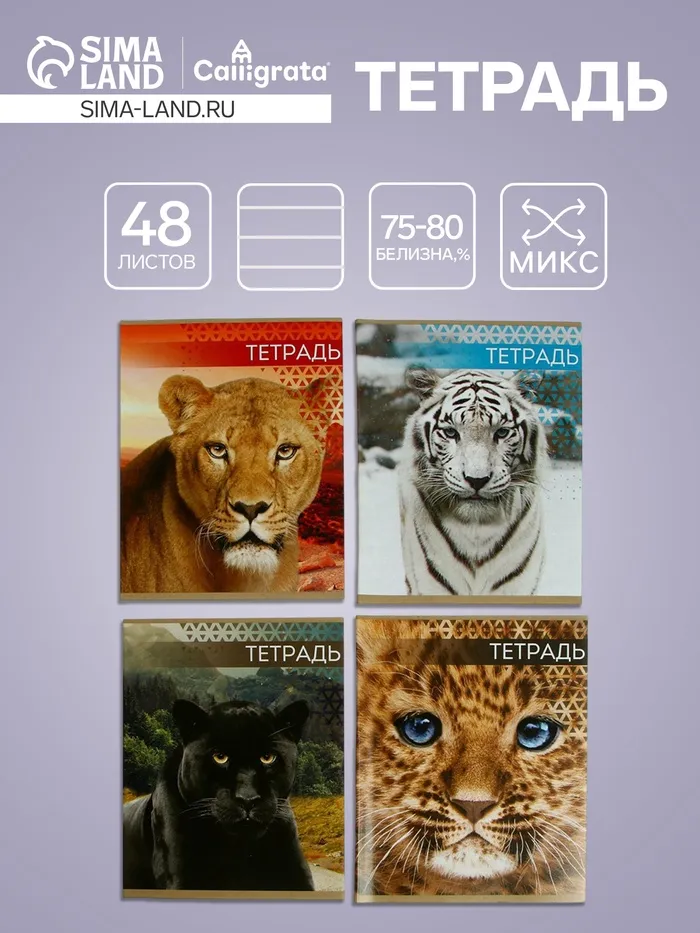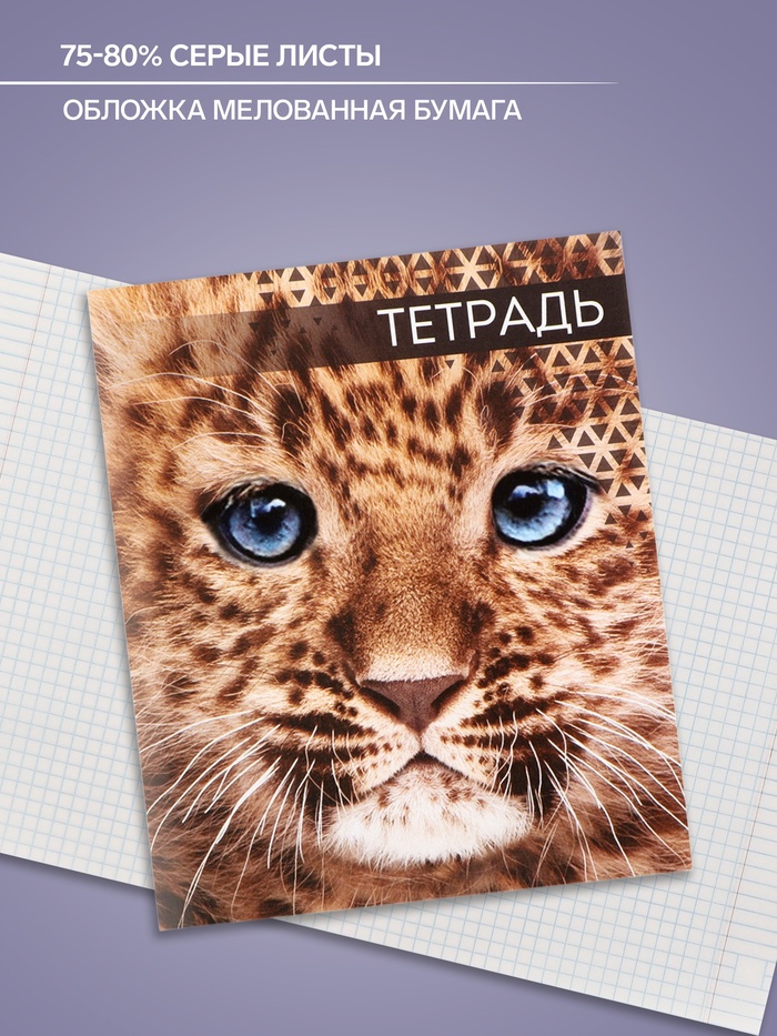 Тетрадь 48 листов в клетку, Calligrata «Дикие кошки», обложка мелованная бумага, МИКС — Характеристики