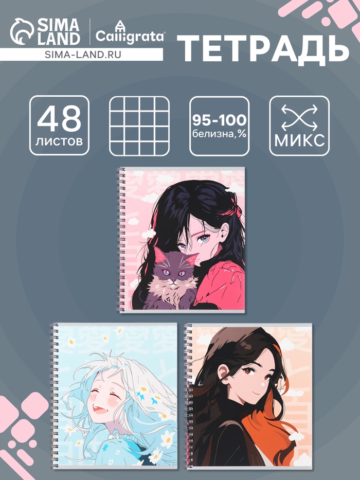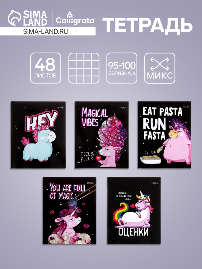 Тетрадь 48 листов в клетку Calligrata «Единорог», МИКС — Характеристики