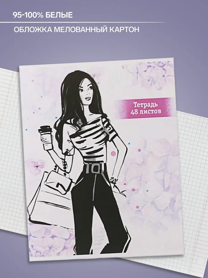 Тетрадь 48 листов в клетку Calligrata «Фешн», обложка мелованный картон, блок офсет, МИКС — Характеристики