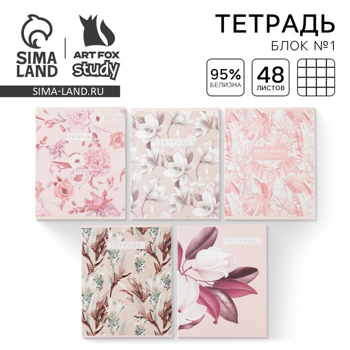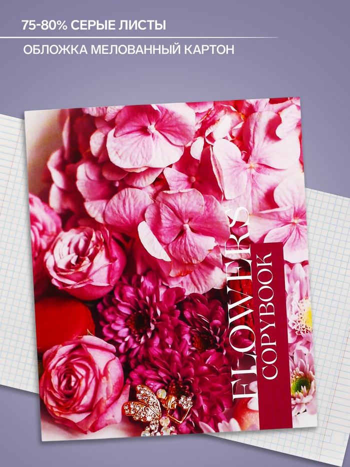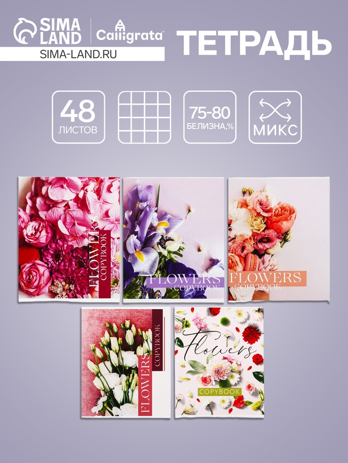 Тетрадь 48 листов в клетку Calligrata «Флористика», серые листы, МИКС — Характеристики