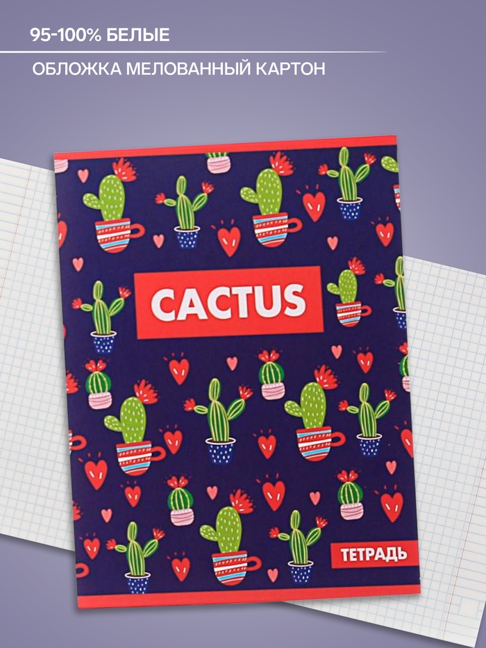 Тетрадь 48 листов в клетку, Calligrata «Кактус», обложка мелованный картон, МИКС — Характеристики