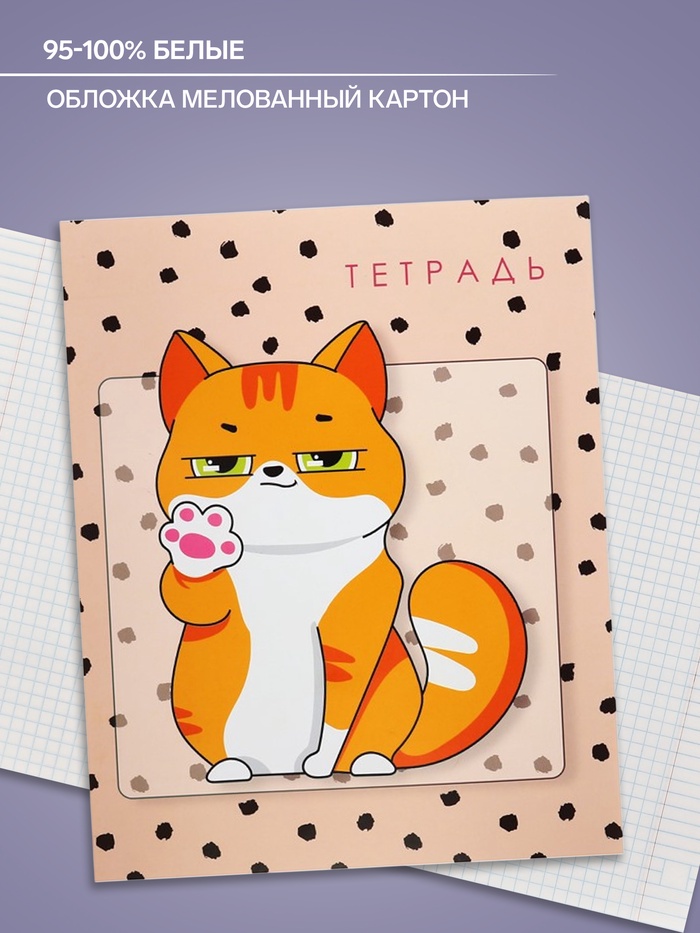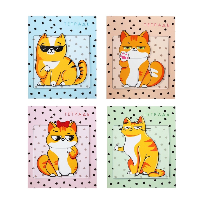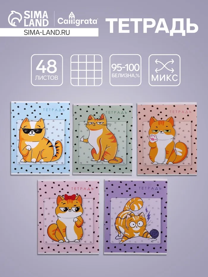 Тетрадь 48 листов в клетку, Calligrata «Коты», обложка мелованный картон, МИКС — Характеристики