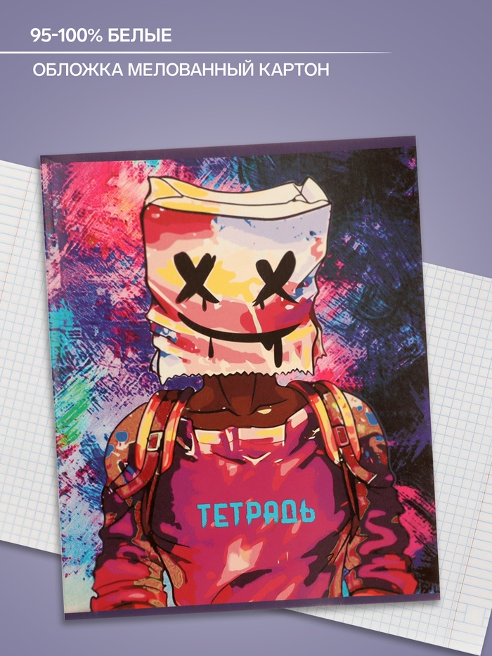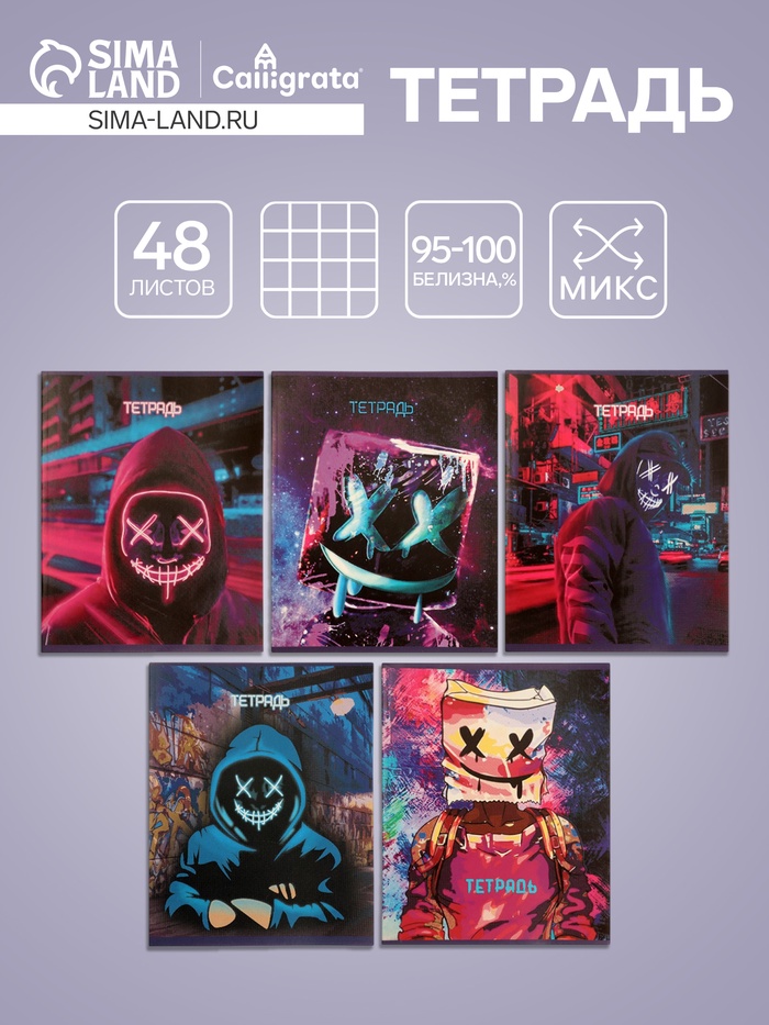 Тетрадь 48 листов в клетку Calligrata «Маска», обложка мелованный картон, выборочный УФ-лак, блок офсет, МИКС — Характеристики