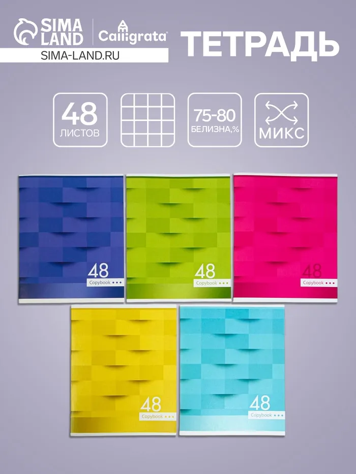 Тетрадь 48 листов в клетку Calligrata «Мозаика», обложка мелованный картон, блок №2, белизна 75% (серые листы), МИКС — Характеристики