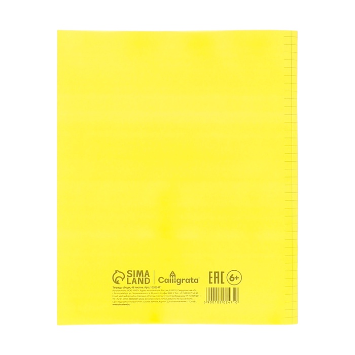 Тетрадь 48 листов в клетку, Calligrata, пластиковая обложка, желтая — Характеристики