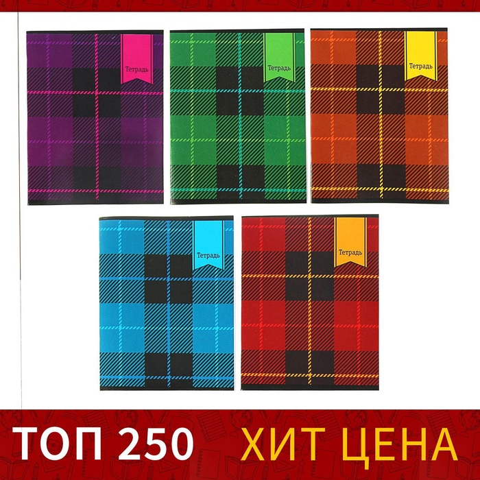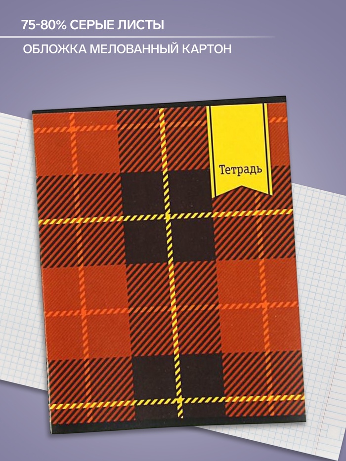 Тетрадь 48 листов в клетку Calligrata «Шотландка», обложка мелованный картон, блок №2, белизна 75% (серые листы), МИКС — Характеристики