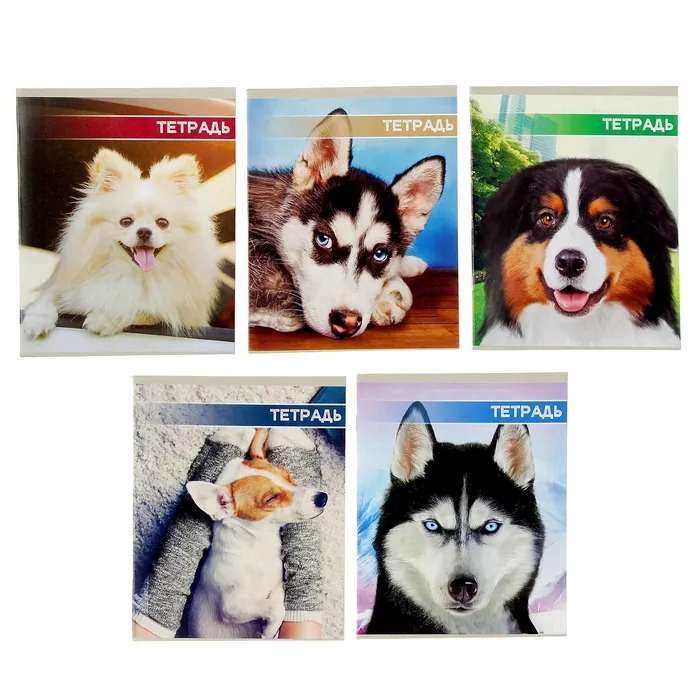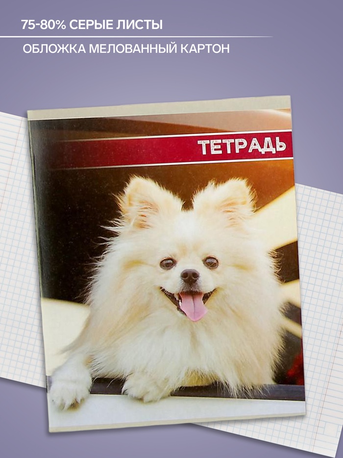 Тетрадь 48 листов в клетку Calligrata «Собачьи мордочки», обложка мелованный картон, блок №2, белизна 75% (серые листы), МИКС — Характеристики