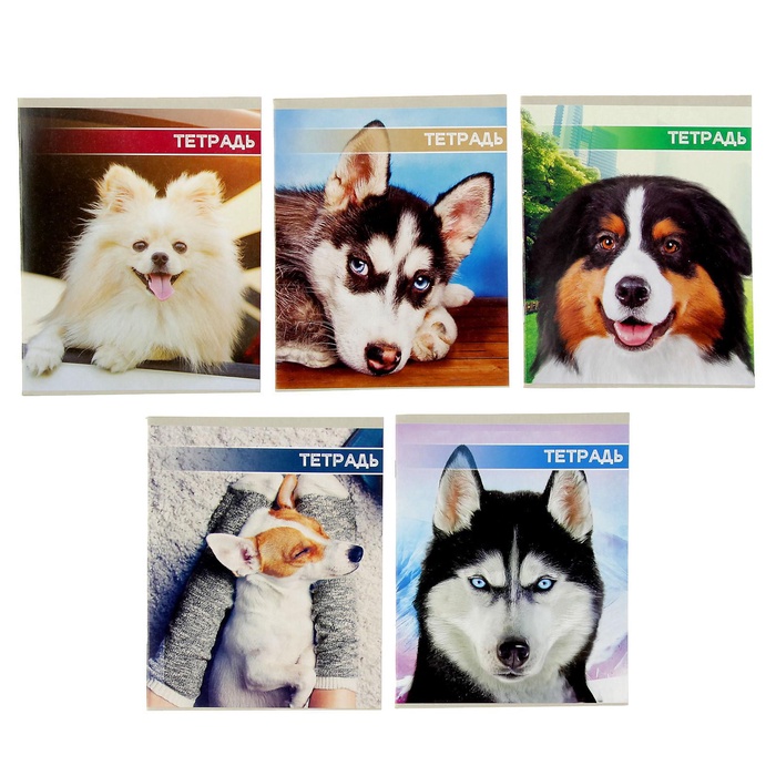 Тетрадь 48 листов в клетку Calligrata «Собачьи мордочки», обложка мелованный картон, блок №2, белизна 75% (серые листы), МИКС