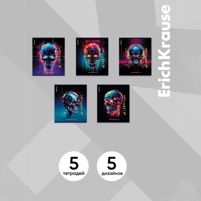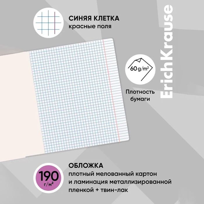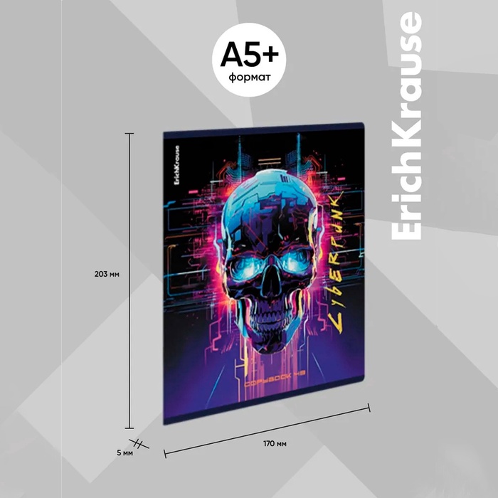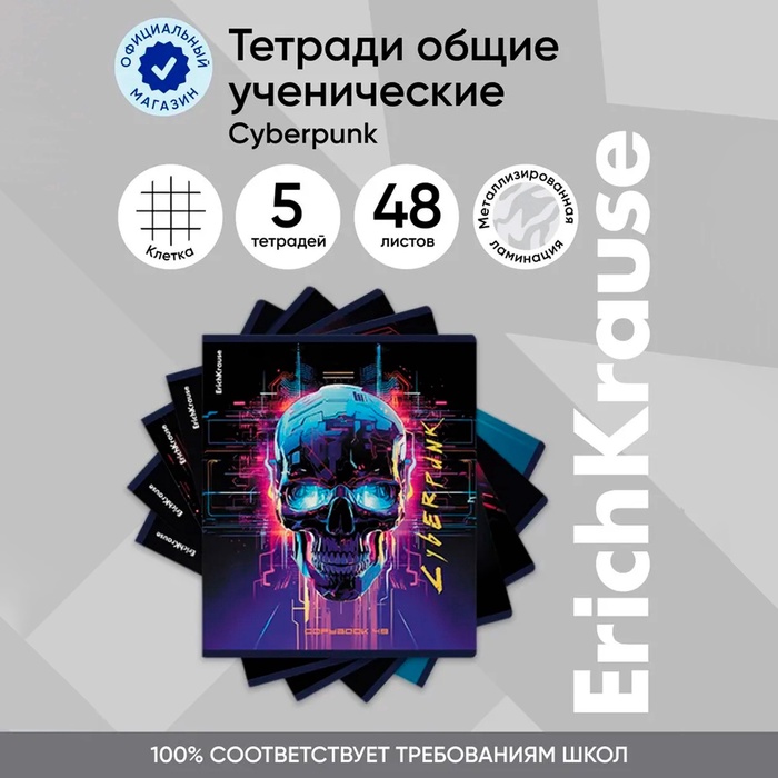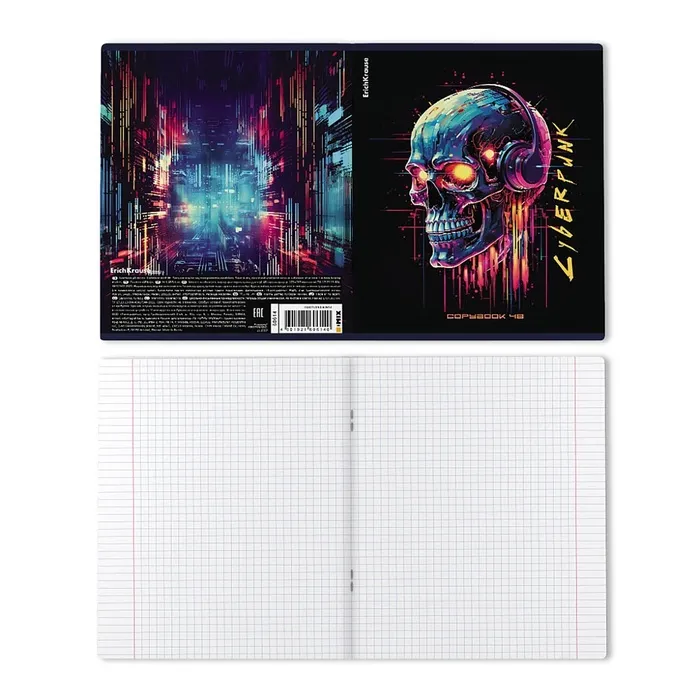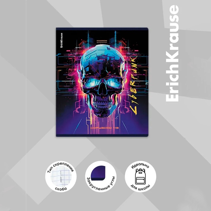 Тетрадь 48 листов в клетку ErichKrause Cyberpunk, обложка мелованный картон, металлизированная ламинация, твин-лак, блок офсет 100% белизна, МИКС — Характеристики
