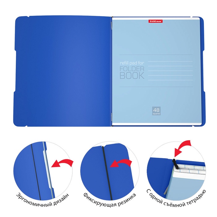 Тетрадь 48 листов в клетку, ErichKrause FolderBook, съёмная пластиковая обложка, на резинке, синяя — Характеристики
