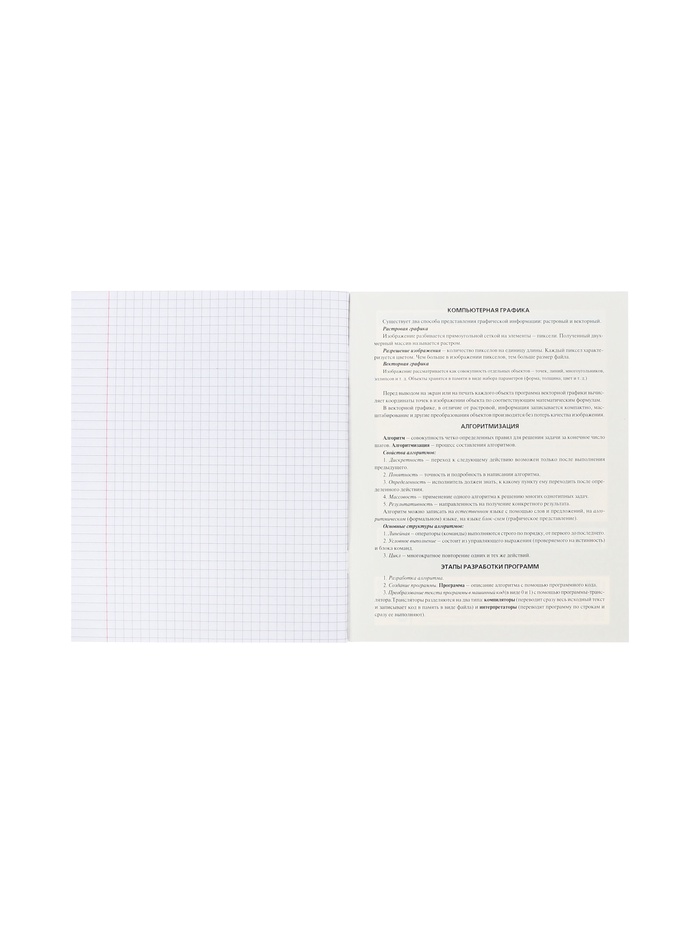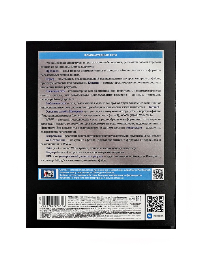 Тетрадь 48 листов в клетку «Гармония» ИНФОРМАТИКА, обложка мелованный картон, выборочный лак, с интерактивным справочником, блок офсет — Характеристики