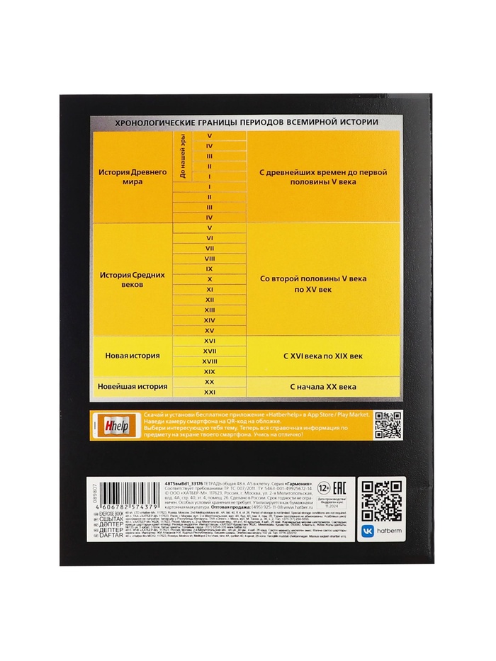 Тетрадь 48 листов в клетку «Гармония» ИСТОРИЯ, обложка мелованный картон, выборочный лак, с интерактивным справочником, блок офсет — Характеристики