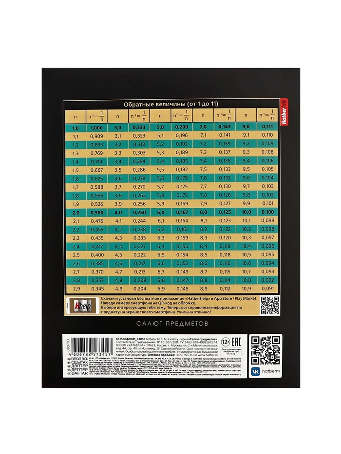 Тетрадь 48 листов в клетку Hatber «Салют предметов» АЛГЕБРА, обложка мелованный картон, матовая ламинация, 3D-лак, тиснение фольгой, с интерактивн... — Характеристики