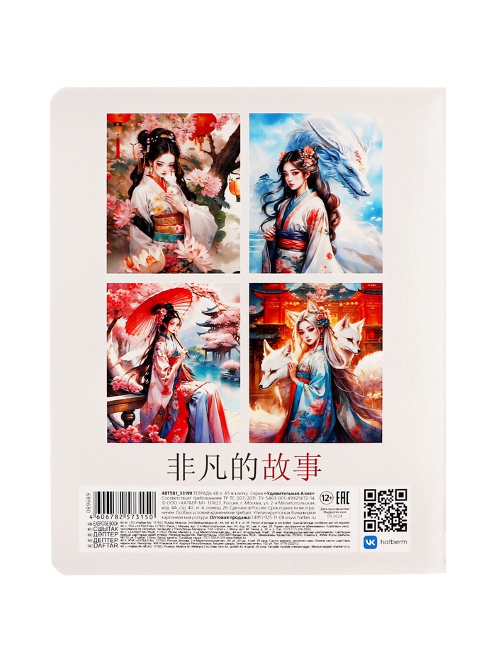 Тетрадь 48 листов в клетку Hatber «Удивительная Азия», обложка мелованный картон, скругленные углы, блок офсет 60-65 г/м², МИКС 5 видов — Характеристики