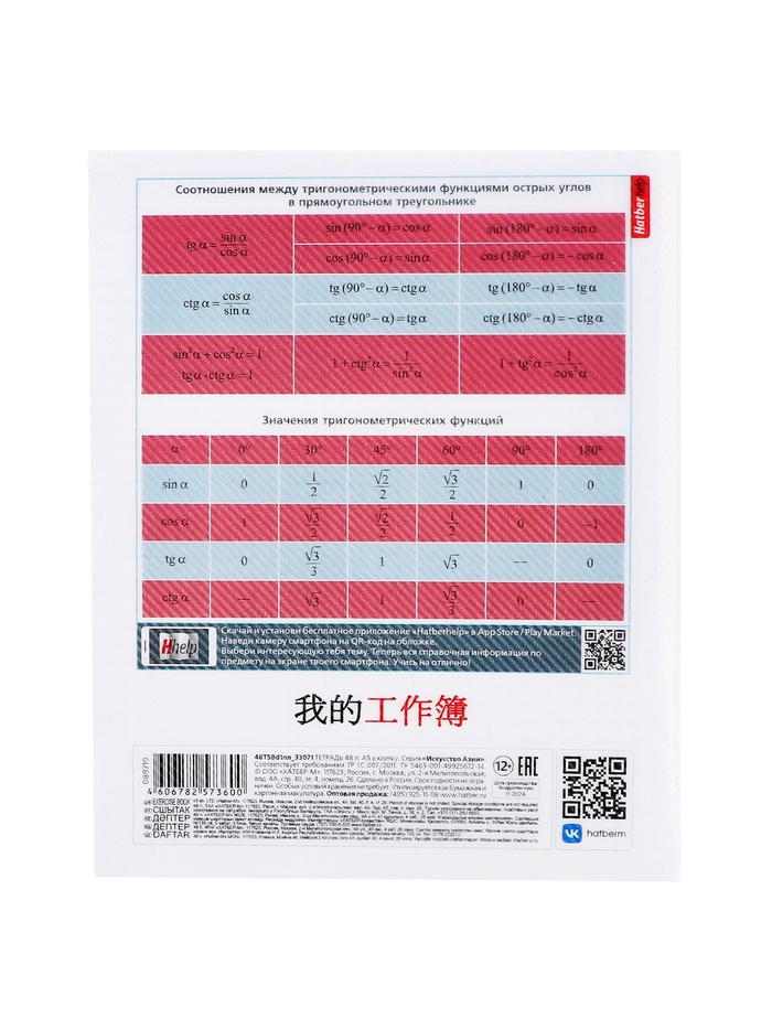 Тетрадь 48 листов в клетку «Искусство Азии» ГЕОМЕТРИЯ, пластиковая обложка с печатью, тиснение фольгой, с интерактивным справочником, блок оф... — Характеристики