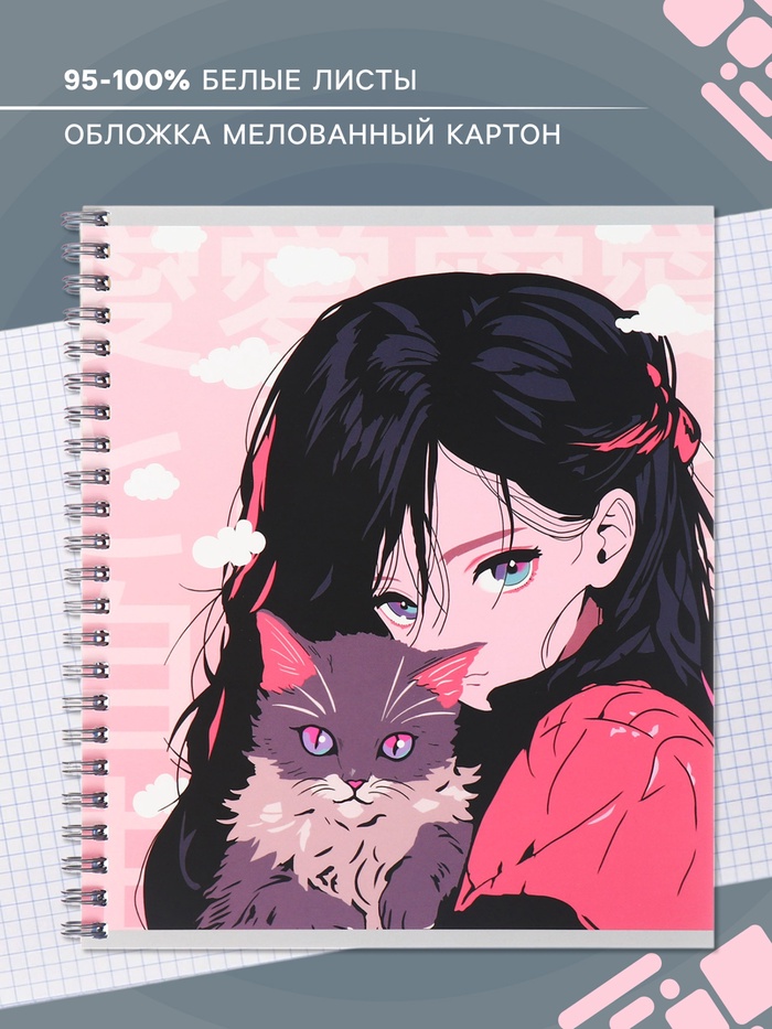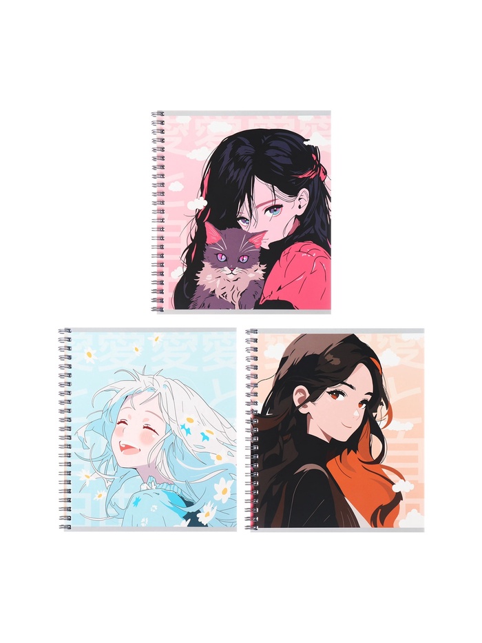 Тетрадь 48 листов в клетку на гребне «Аниме девушки», обложка мелованный картон, МИКС — Характеристики