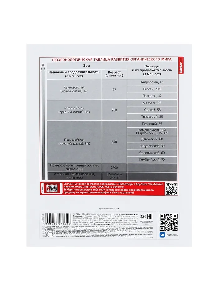 Тетрадь 48 листов в клетку «Приключения кота Пирожка» БИОЛОГИЯ, обложка мелованная бумага, с интерактивным справочником, блок офсет — Характеристики