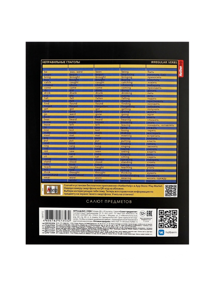 Тетрадь 48 листов в клетку «Салют предметов» АНГЛИЙСКИЙ, обложка мелованный картон, матовая ламинация, 3D-лак, тиснение фольгой, с интерактивны... — Характеристики
