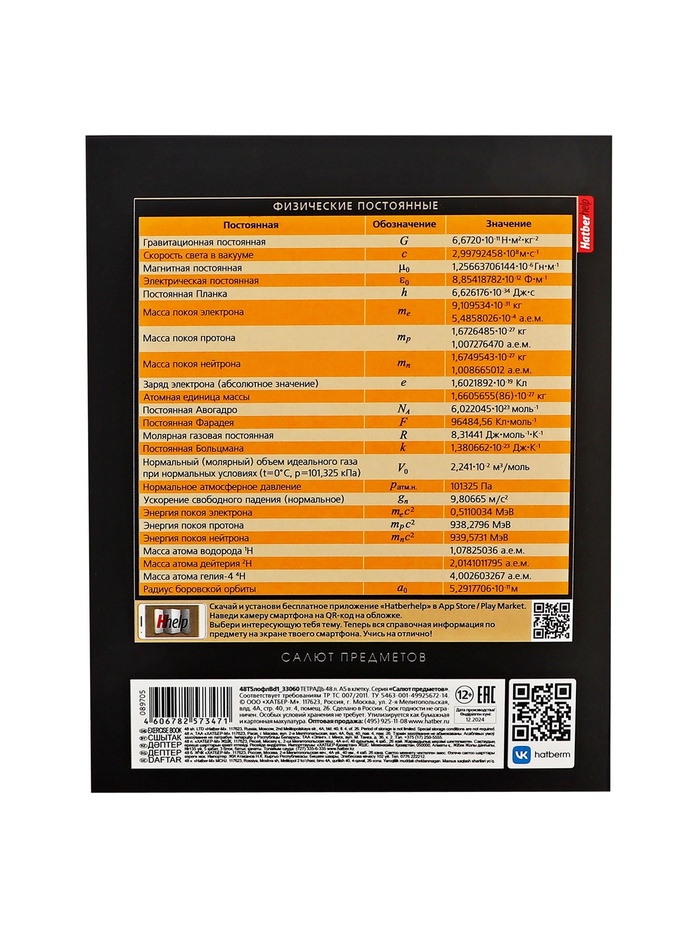Тетрадь 48 листов в клетку «Салют предметов» ФИЗИКА, обложка мелованный картон, матовая ламинация, 3D-лак, тиснение фольгой, с интерактивным сп... — Характеристики