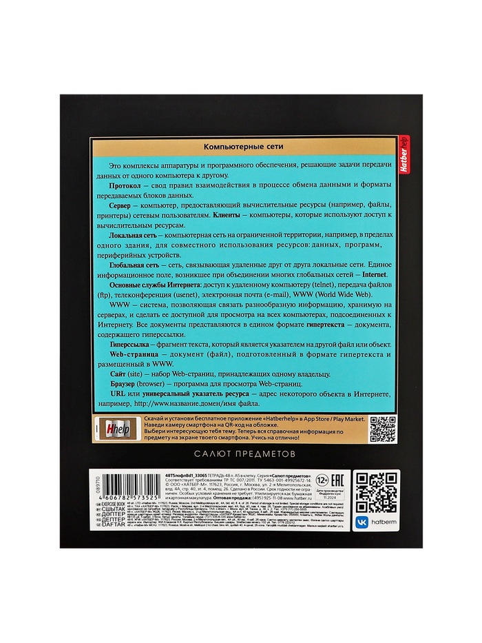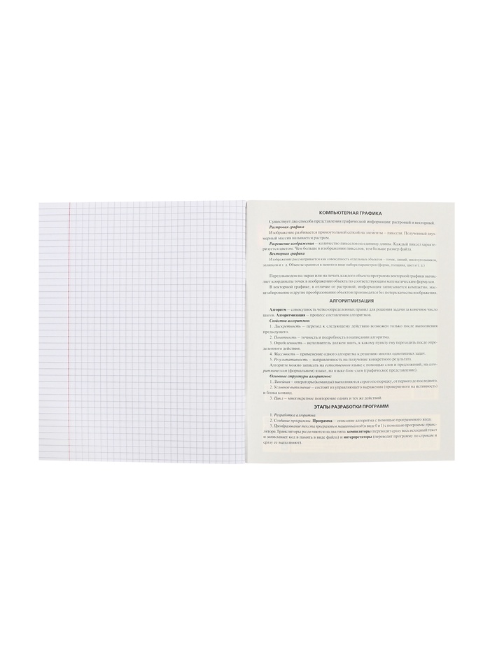 Тетрадь 48 листов в клетку «Салют предметов» ИНФОРМАТИКА, обложка мелованный картон, матовая ламинация, 3D-лак, тиснение фольгой, с интерактивн�... — Характеристики