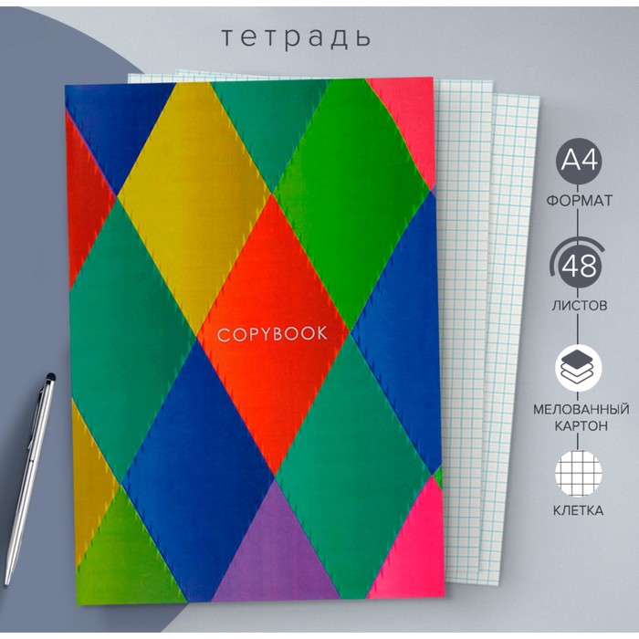Тетрадь 48 листов в клетку «Зелёная», обложка бумвинил, серые листы — Характеристики
