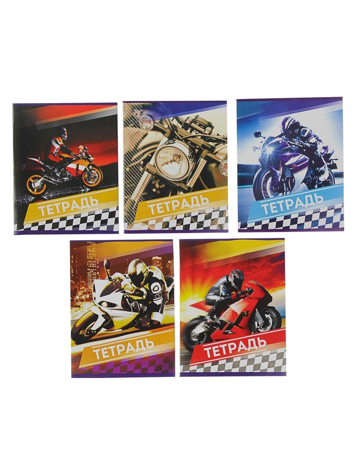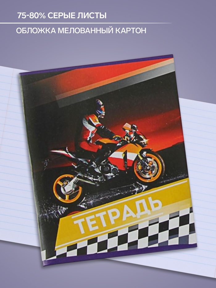 Тетрадь 48 листов в линейку Calligrata «Мотоциклы», обложка мелованный картон, блок №2, белизна 75% (серые листы), МИКС — Характеристики