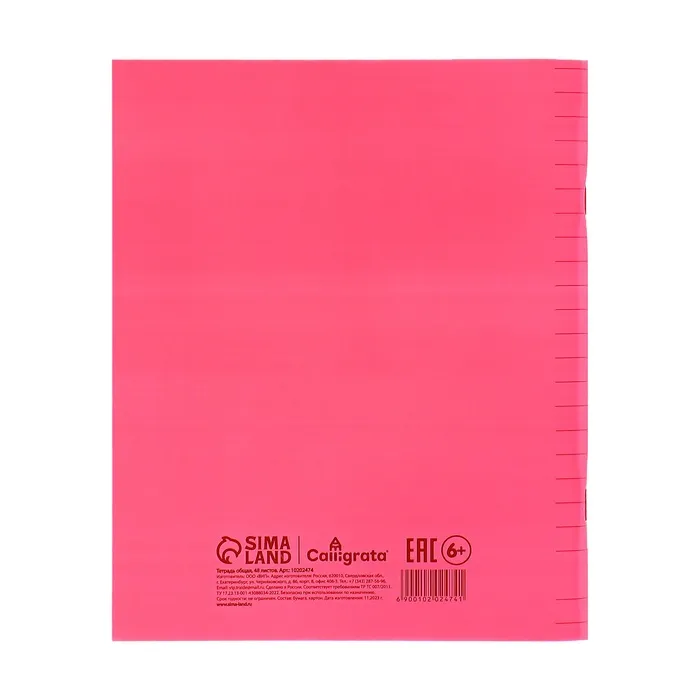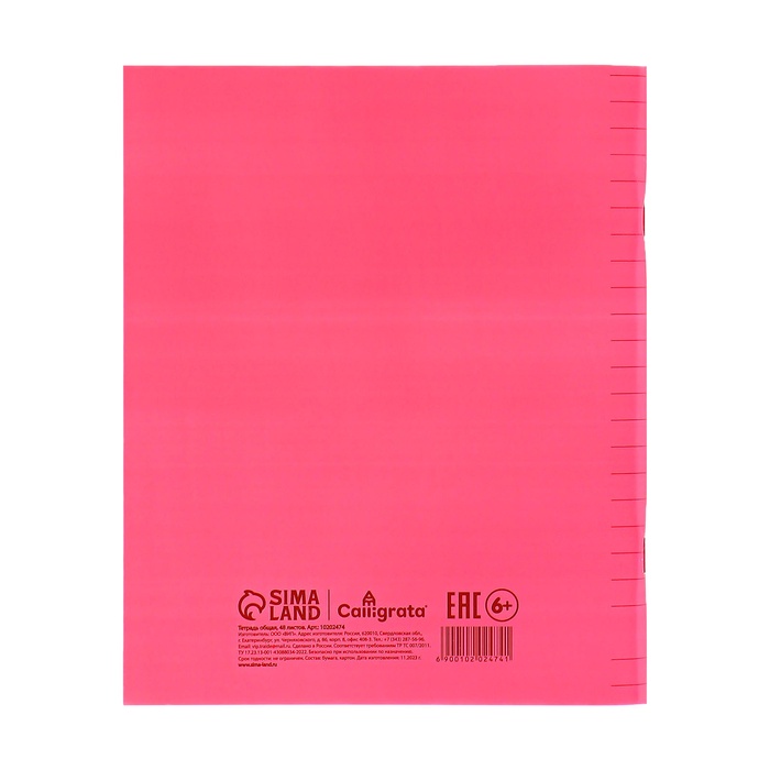 Тетрадь 48 листов в линейку Calligrata, пластиковая обложка, с алфавитом, блок офсет, красная — Характеристики