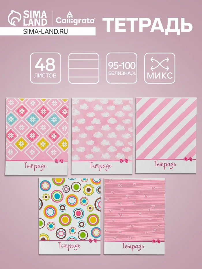 Тетрадь 48 листов в линейку Calligrata «Узоры», обложка мелованный картон, блок офсет, МИКС — Характеристики
