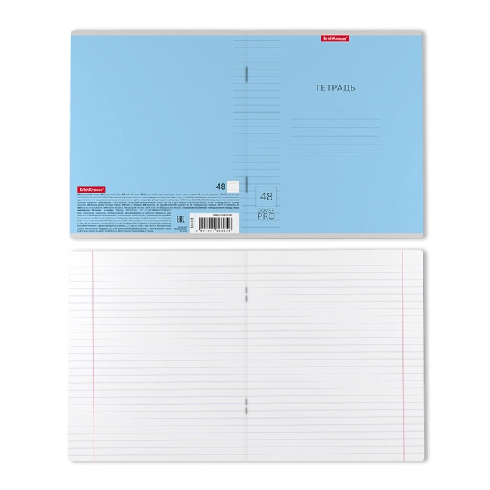 Тетрадь общая ученическая формата А5+ (170 x 203 мм). Двойная обложка: внешняя выполнена из высококачественного износостойкого прозрачного пластика с фактурой "апельсиновая корка", внутренняя — из качественной мелованной бумаги. В блоке 48 листов в линейку. Бумага офсетная плотностью 60 г/м2. Цвет линовки — синий. Скругленные уголки обложки и блока. Тип скрепления — скоба. Тетради разных дизайнов упакованы в термоусадочную пленку по 5 штук.