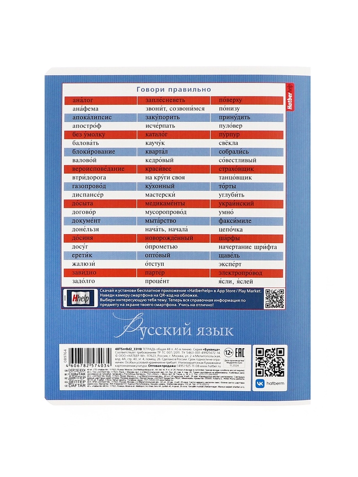 Тетрадь 48 листов в линию «Буквица» Русский язык, белые листы — Характеристики