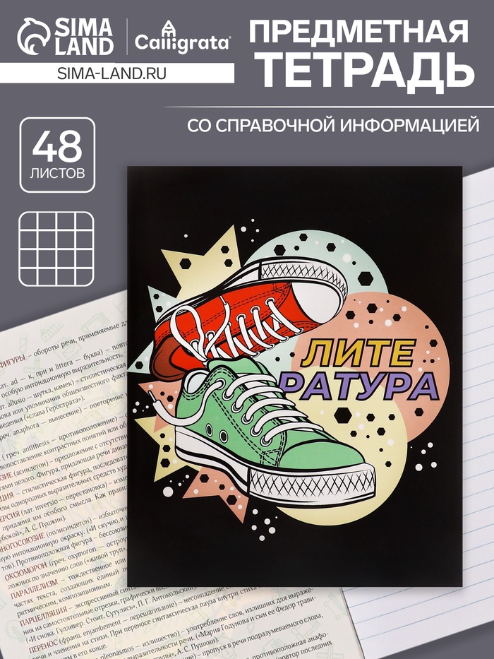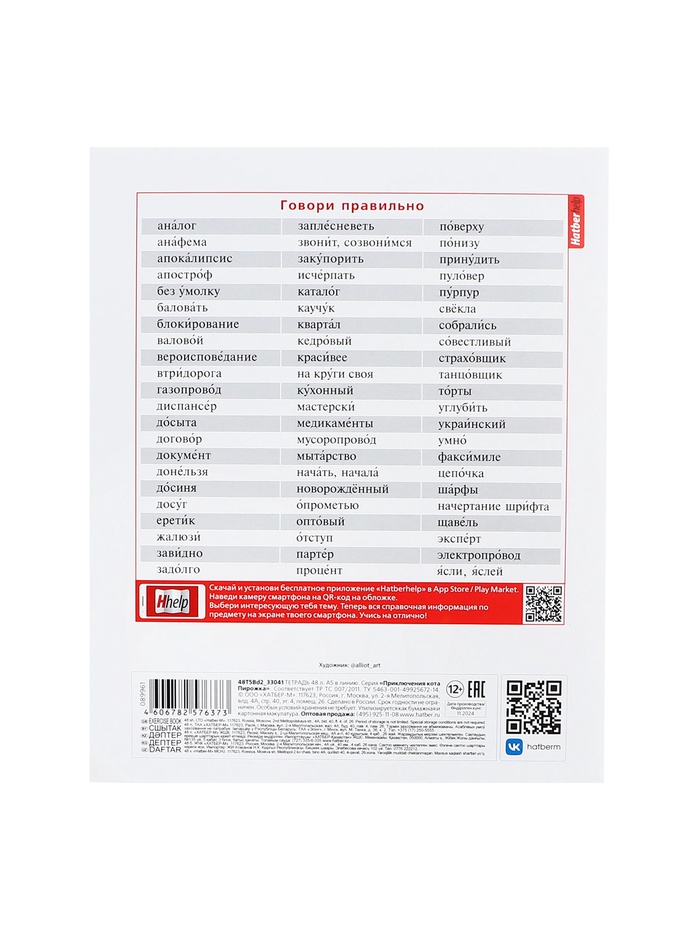 Тетрадь 48 листов в линию «Приключения кота Пирожка» РУССКИЙ ЯЗЫК, обложка мелованная бумага, с интерактивным справочником, блок офсет — Характеристики