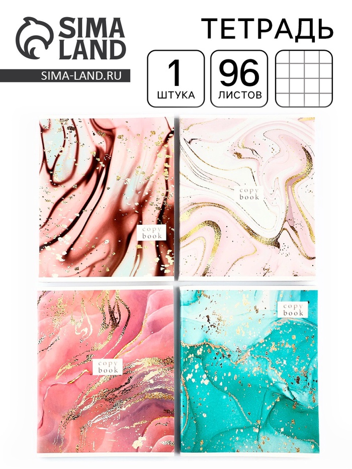 Тетрадь в клетку, 96 л., А5, на скрепке «Мрамор» МИКС