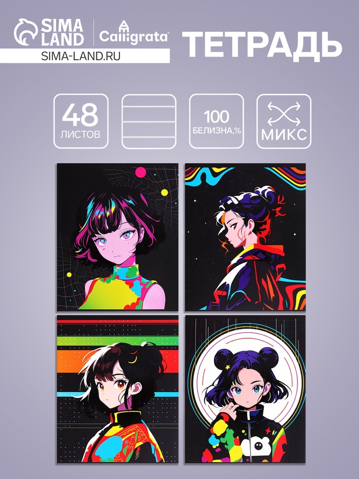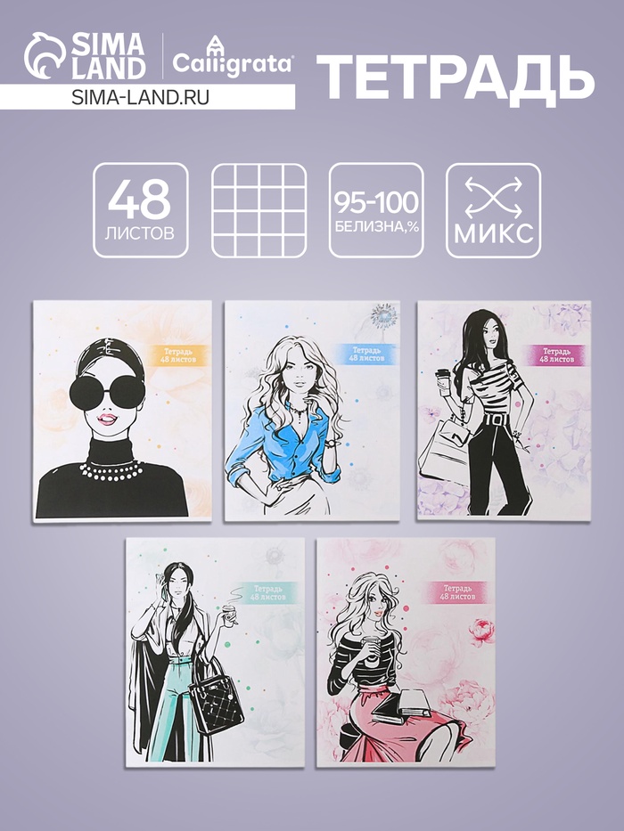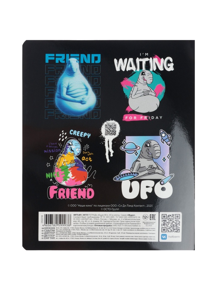 Тетрадь 48л кл Hatber "ЖДУН", на скобе, скругл углы, глянц лам, 60-65г/м² 5В МИКС — Характеристики