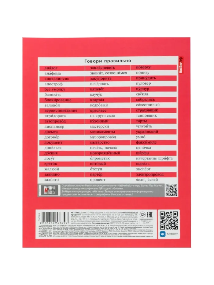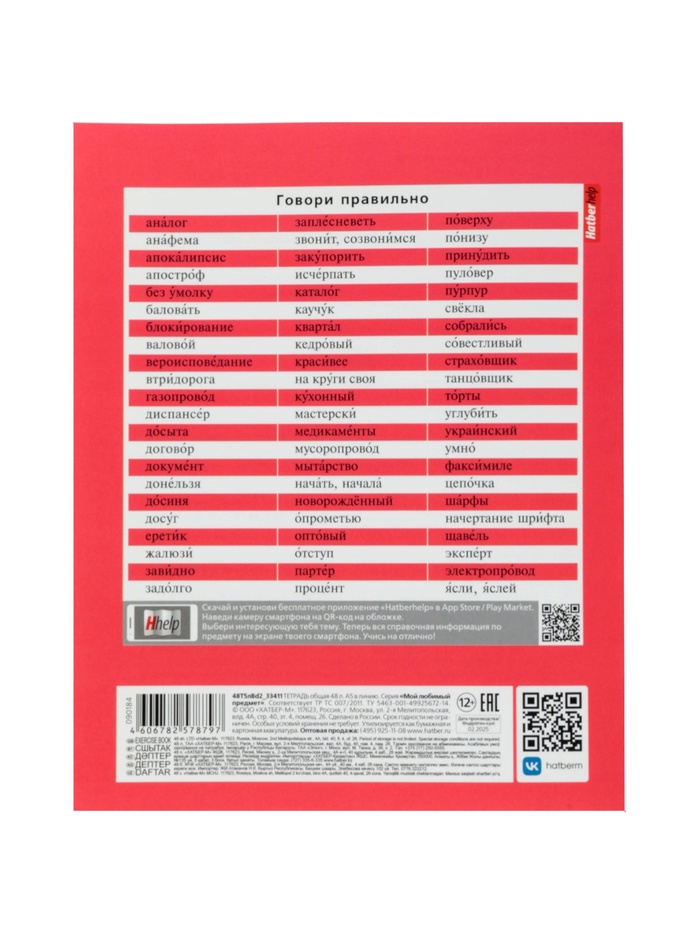 Тетрадь 48л лин "Мой любимый предмет" РУССКИЙ ЯЗЫК, мел карт, S-touch, интер справ, офсет — Характеристики