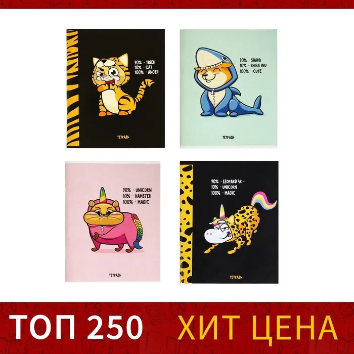 Тетрадь, 96 листов в клетку, Calligrata «Кигуруми», МИКС — Характеристики