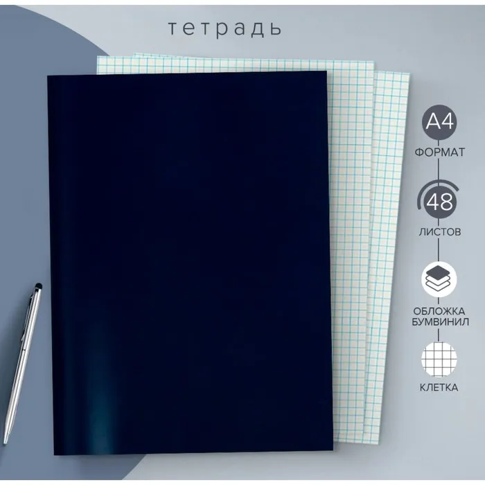 Тетрадь А4, 48 листов в клетку Calligrata, бумвинил, блок офсет, синий — Характеристики