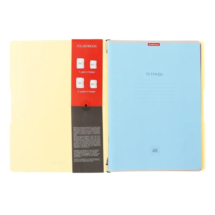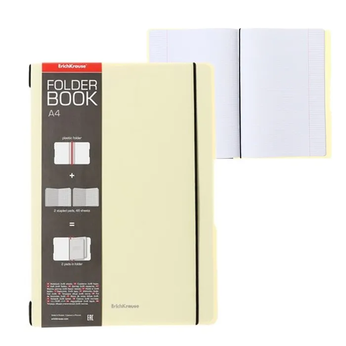 Тетрадь общая ученическая формата А4 (210x297 мм) со сменным блоком FB Solution в пластиковой обложке. В комплект входит одна тетрадь 48 листов на скобе в клетку. Удобная система крепления на резинке дает возможность быстрой замены тетрадей, а фиксирующая резинка предотвращает нежелательное раскрытие. Эргономичный дизайн: специальные выемки на обложке облегчают перелистывание. Обложка из высококачественного износостойкого матового пластика с фактурой «песок». Бумага офсетная плотностью 60 г/м2. Цвет линовки — синий. Скругленные уголки обложки и блока. Рекламный вкладыш с информацией о товаре. Тетради упакованы в пакет по 2 штуки. Сменные блоки FB Solution можно купить отдельно, но также для данной обложки подойдет любая тетрадь на скобе А4 ErichKrause.