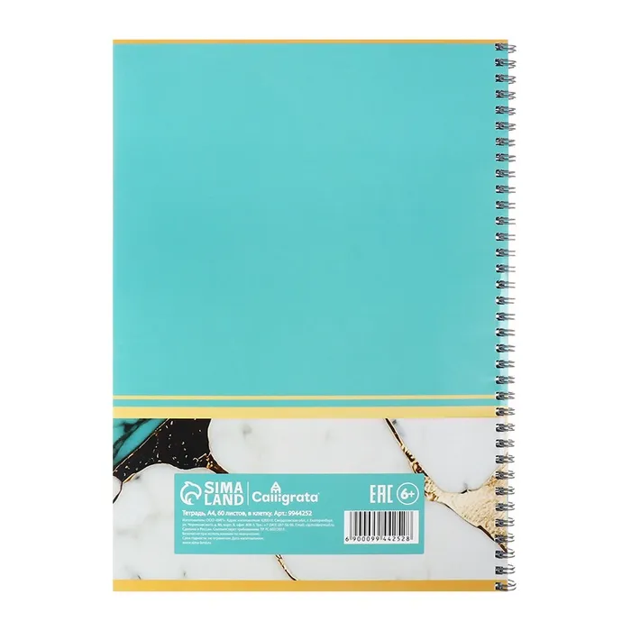 Тетрадь A4, 60 листов в клетку на гребне «Мрамор», обложка мелованный картон, блок офсет, с полосой — Характеристики