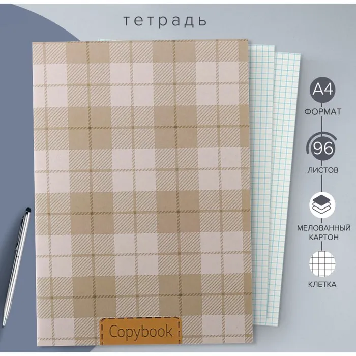 Тетрадь А4, 96 листов в клетку Calligrata «Шотландка», обложка мелованный картон, блок №2, белизна 75%, бежевая, (серые листы) — Характеристики